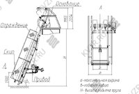 Транспортер СКИП 200 представляет собой устройство, собранное последовательно основание – опорной рамы предназначено для передачи нагрузки от веса подъемника и поднимаемого груза на опорную поверхность, направляющей – рамы с полозьями для движения в них ковша (скипа), скипа – ковша для загрузки в него и подъема в нем сыпучего материала, ограждений для ограничения доступа к движущимся элементам подъемника, привода – силового агрегата с тормозом осуществляющего перемещение ковша по направляющей с помощью канатной тяги, в крайних положениях ковша устанавливаются концевые выключатели для ограничения перемещения ковша и автоматизации приема крайних положений в ходе рабочего цикла.